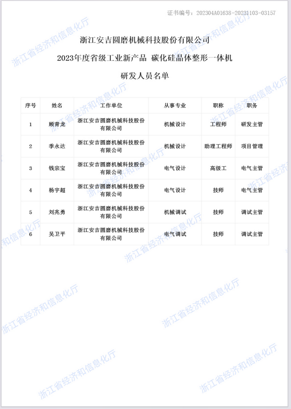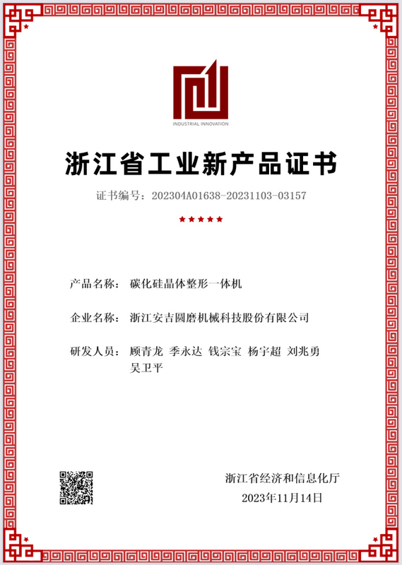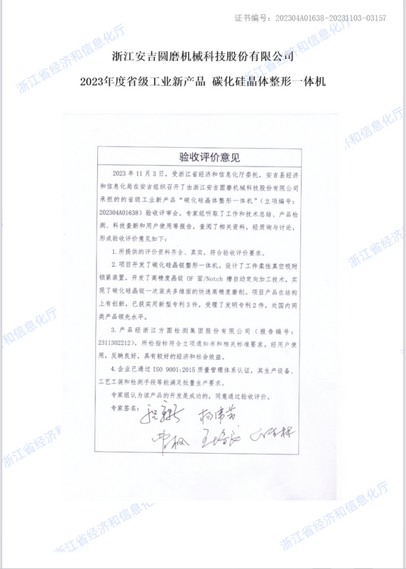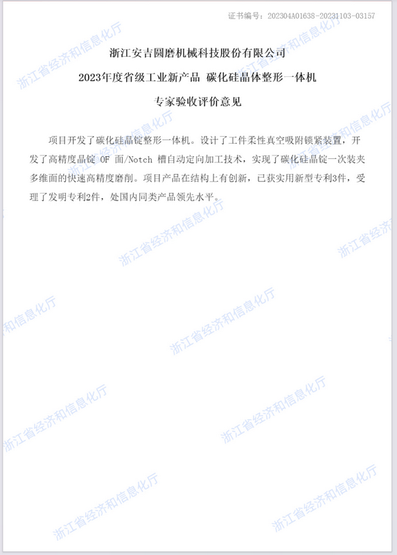 • 碳化硅晶體整形一體機新產(chǎn)品評價證書