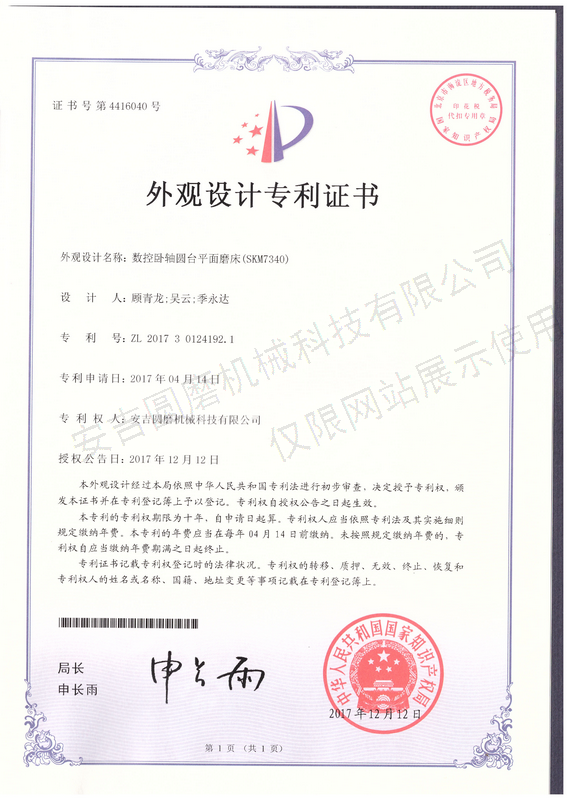 • 外觀設(shè)計專利證書