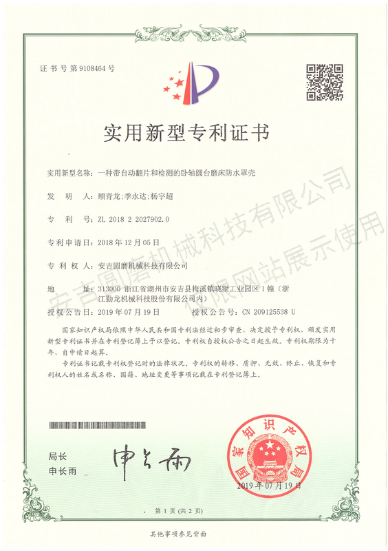 • 實用新型專利證書