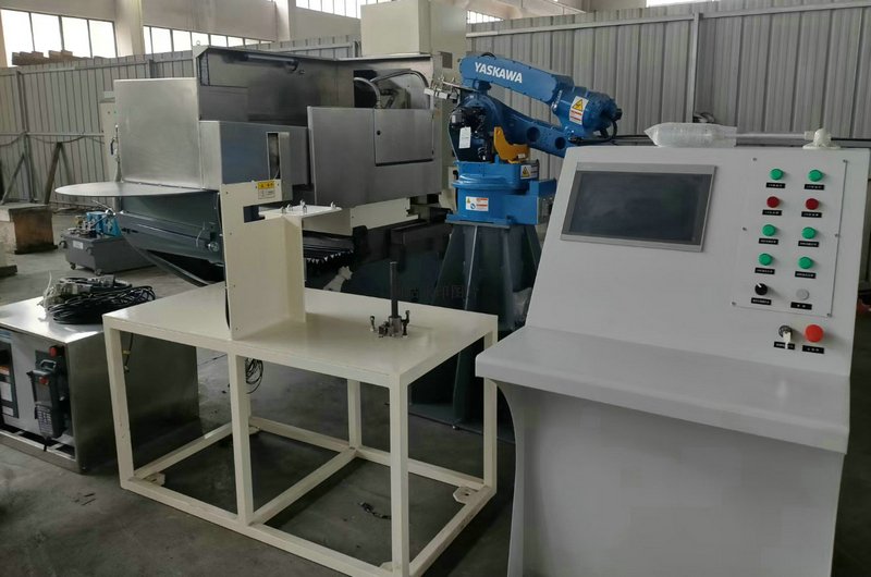 QSSKMG7363高速數(shù)控臥軸圓臺平面磨床立柱移動采x軸采用進(jìn)口直線導(dǎo)軌,自動加油,保證長欠精度和方便更換性。磨頭采用高精靜壓主軸設(shè)計,軸承工作臺,電磁銅芯圓吸盤,表面銅芯圓中間割花加十字頂缸,保證碰力均勻表面磁力均勻,并配備了自動充退磁裝置,具有磁力可調(diào)、失磁保護(hù)等功能;,吸住小產(chǎn)品。橫向進(jìn)給及垂直進(jìn)給裝置,減速機(jī)構(gòu)、滾珠絲杠、直線導(dǎo)軌。磨床各導(dǎo)軌處均設(shè)置潤滑點,由電動潤滑泵進(jìn)行潤滑。為工作臺配備立供 油箱,進(jìn)、回管路通過拖鏈合理布局;冷卻水平帶有紙帶過濾器,冷卻管路經(jīng)由拖鏈達(dá)冷卻裝置。電氣采用獨立柜,立操縱臺,數(shù)控系統(tǒng)控制,可二軸聯(lián)動,可實現(xiàn)自動控制,自動完成循環(huán)磨削,增加防撞功能。配備新型自動碰面對刀裝置,砂輪和鋸片碰面后按實際計算2面分均勻磨削減少變形。半封閉新型不銹鋼防水罩殼,配備自動沖水系統(tǒng),內(nèi)部干凈清爽,配進(jìn)口安川6軸24KG機(jī)械手,同時翻轉(zhuǎn)鋸片進(jìn)行反面磨削,安裝基恩士檢測儀自動檢測產(chǎn)品毛坯,每片成品檢測防止不良品無需人工檢驗。